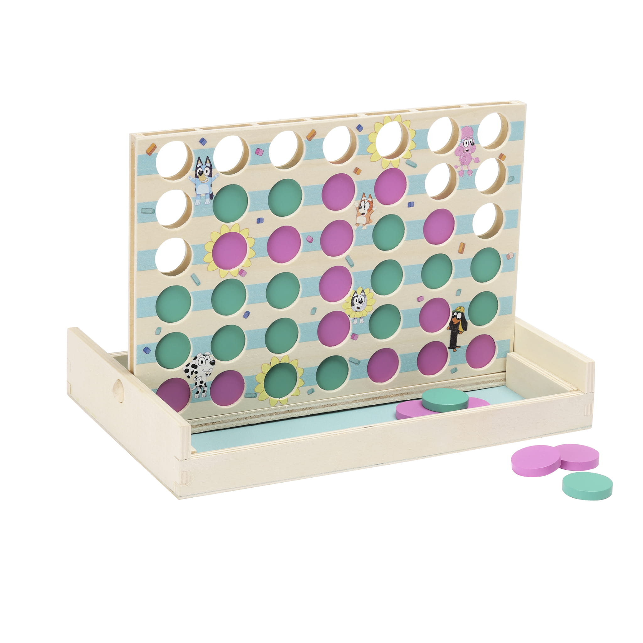 - Klasyczna gra 4 w rzędzie – Wersja z bohaterami Bluey, idealna do zabawy w domu i w podróży