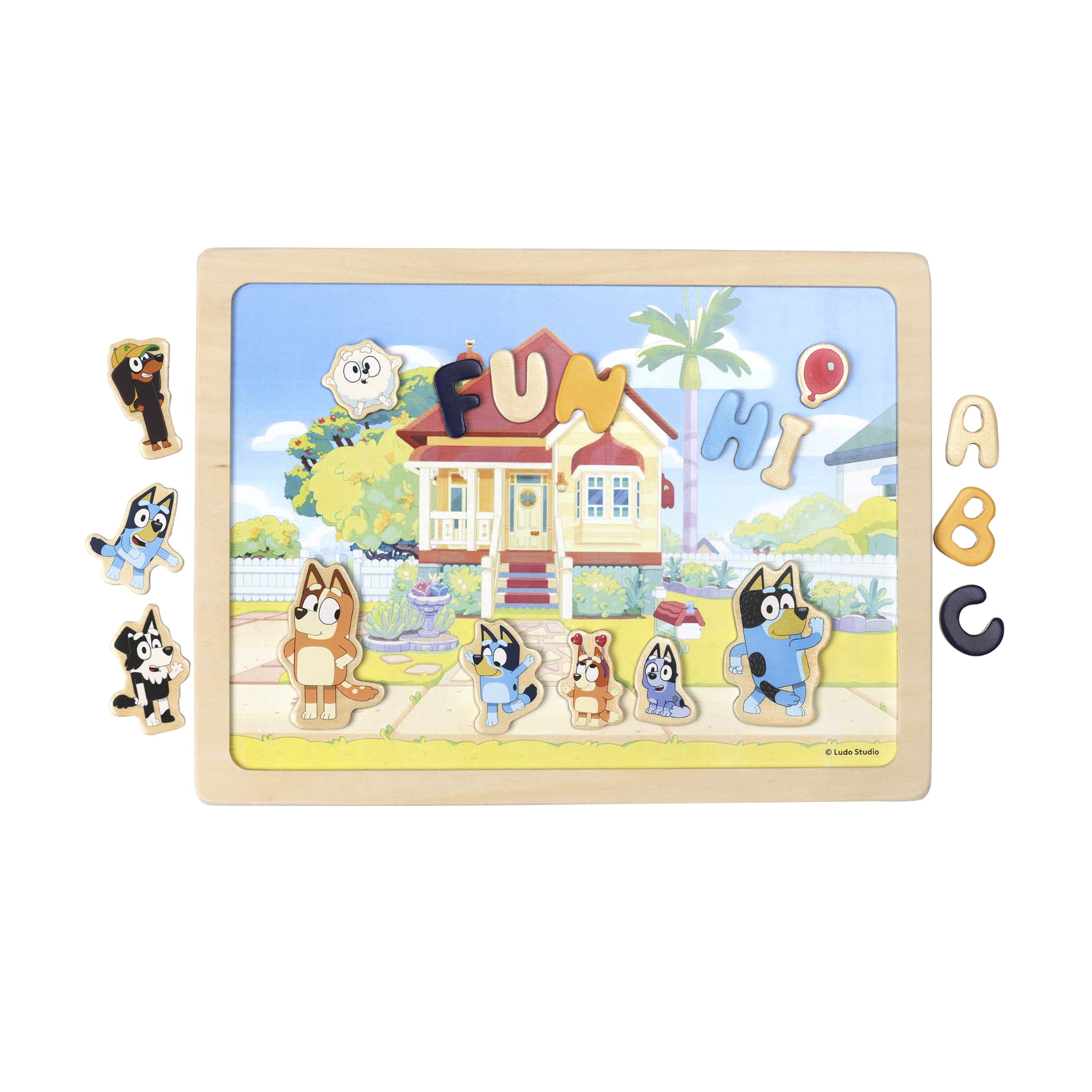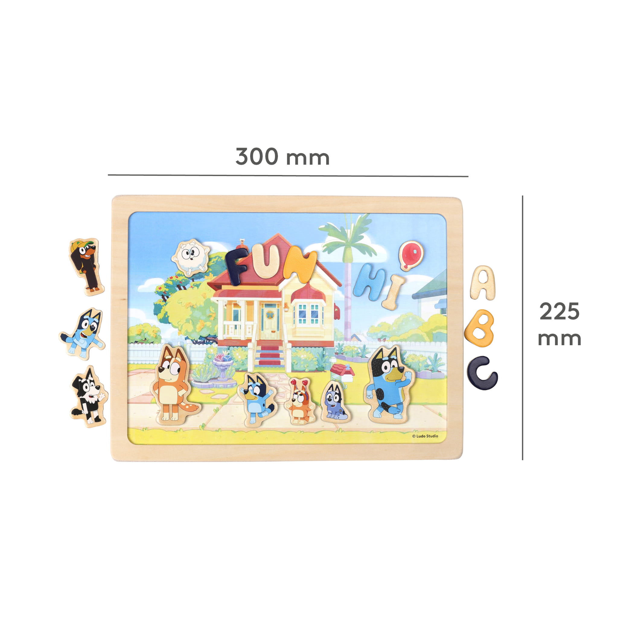 Oferta zawiera drewniane zabawki wykonane z drewna z certyfikatem FSC pochodzącego ze zrównoważonych zasobów, puzzle i akcesoria z wizerunkiem postaci z kreskówki „Bluey”, która jest kochana przez dzieci w różnym wieku za swoje dobre serce, poczucie humoru i radość z codziennego, rodzinnego życia.
