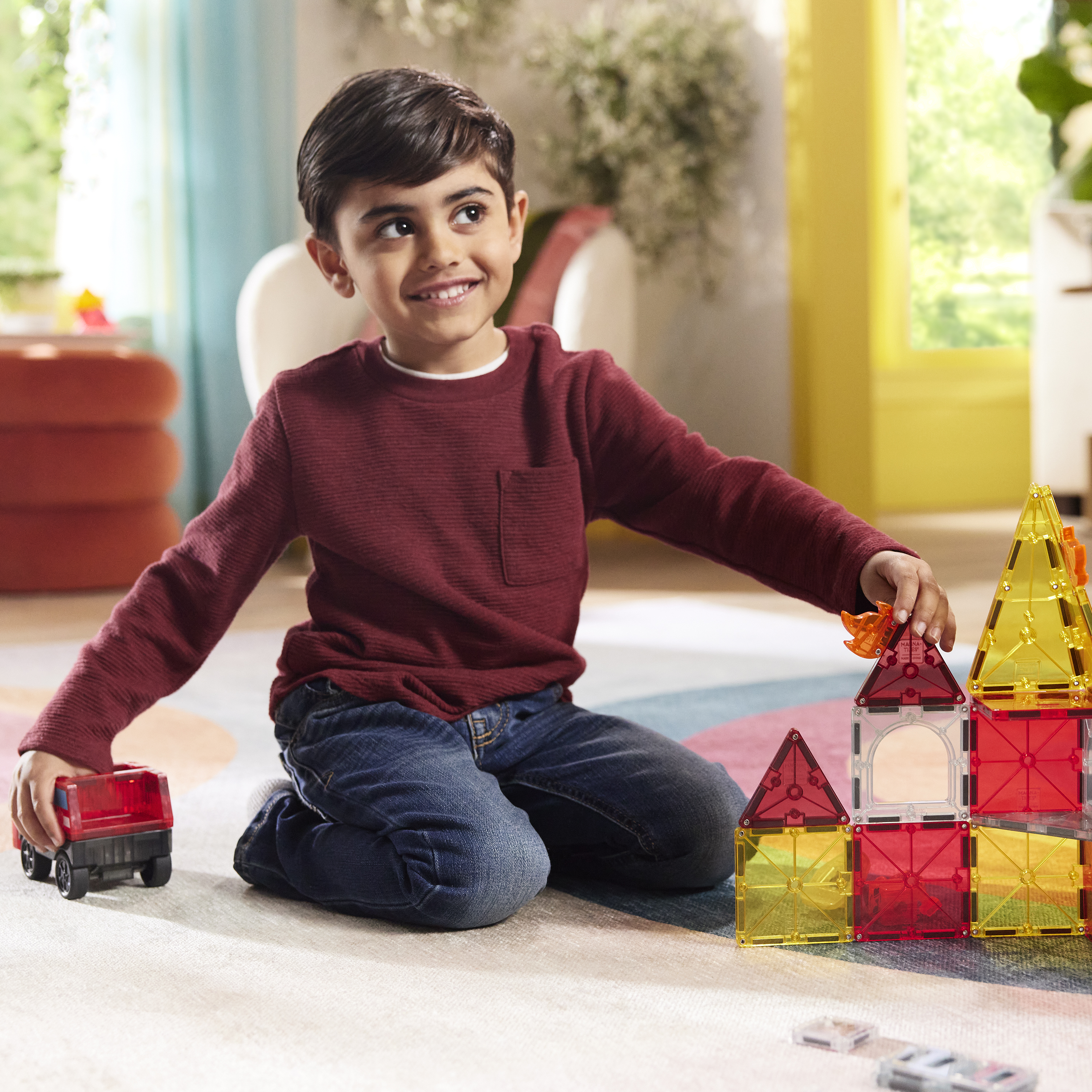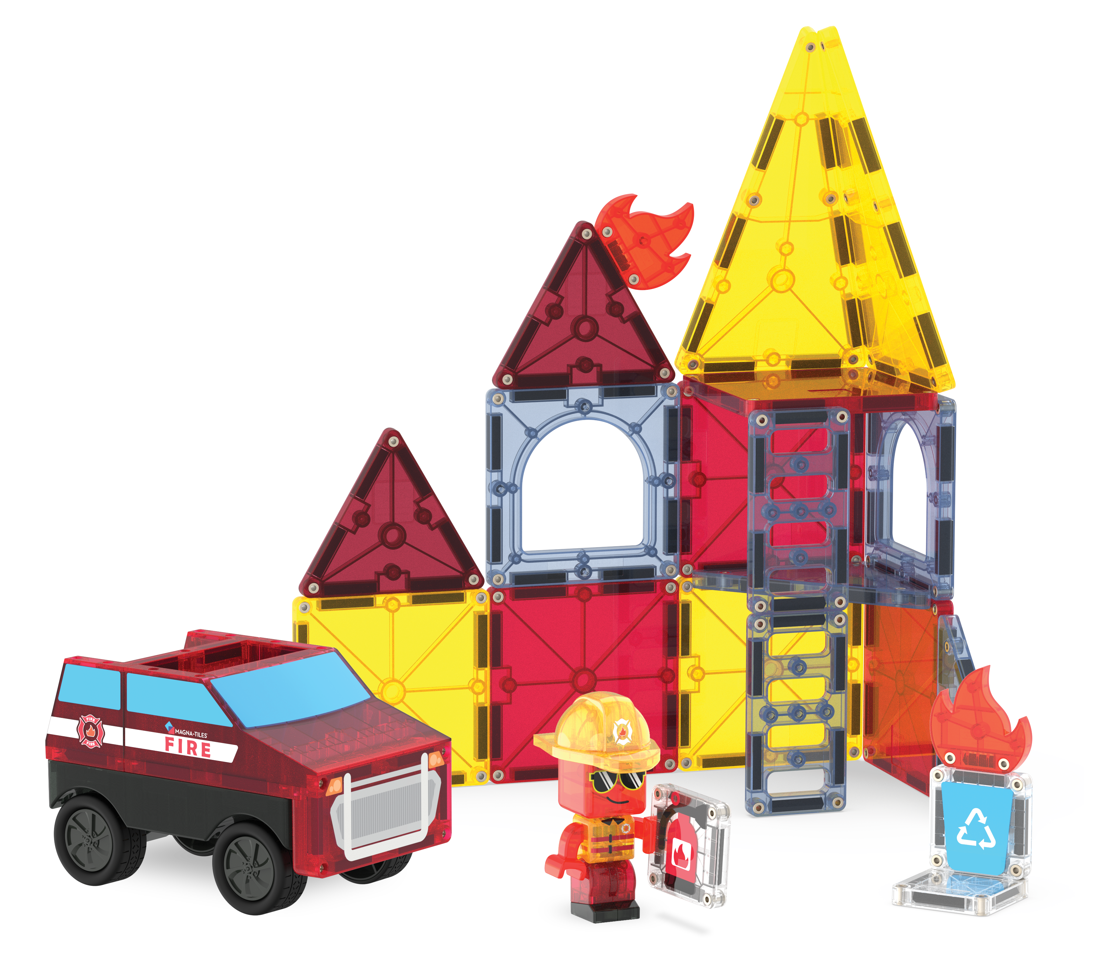 - Kompatybilny z innymi zestawami MAGNA-TILES® – połącz Fire Rescue z zestawem Fire Station, aby stworzyć pełne życia centrum ratunkowe w Twoim magnetycznym mieście.