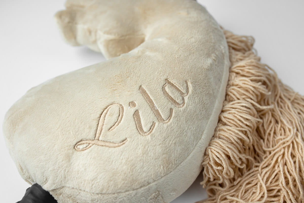 Uszyjemy Hobby Horse tylko dla Ciebie - podaj imię dziecka lub konia a wyhaftujemy go na szyi konia. Otaczaj dziecko tylko wyjątkowymi rzeczami. Idealny pomysł na prezent dla dziewczynki lub chłopca. Koszt personalizacji wynosi 50 zł, a czas realizacji zamówienia z haftem to 2-3 dni robocze.