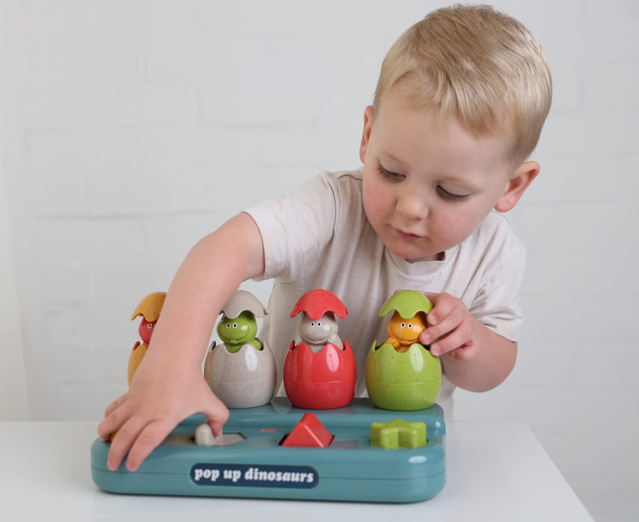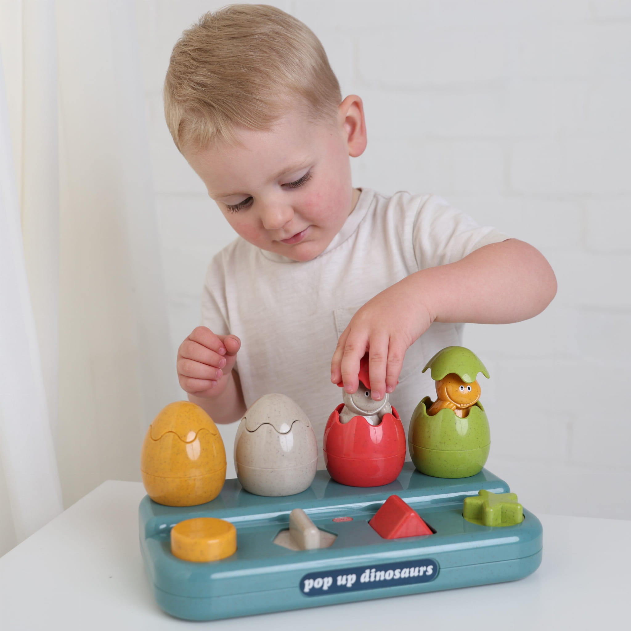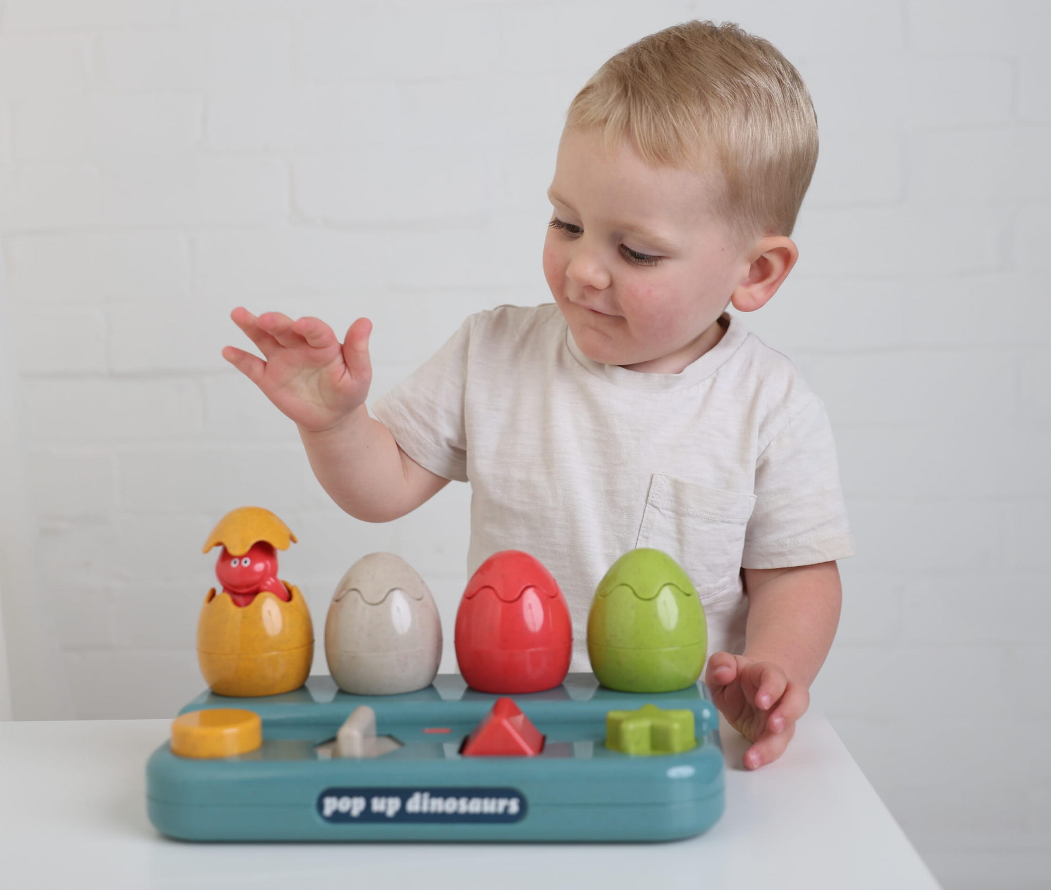 Interaktywne wyskakiwanie dinozaurów: Dzieci mogą na cztery różne sposoby sprawić, by dinozaury wyskoczyły z jajek. Przyciski i mechanizmy zabawki rozweselają malucha, zachęcając do eksperymentowania.