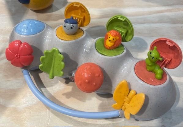 - Zrozumienie przyczyny i skutku – Dziecko uczy się, że naciśnięcie przycisku powoduje wypchnięcie postaci, rozwijając logiczne myślenie