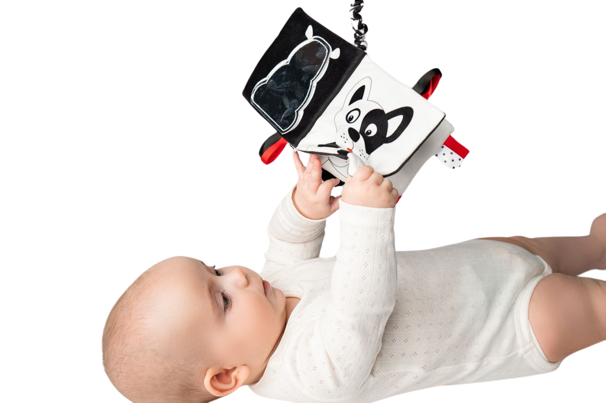 Książeczka Mom’s Care została zaprojektowana z myślą o najmłodszych, którzy dopiero uczą się odbierać świat wokół siebie. Dzięki kontrastowym, czarno-białym ilustracjom, stymulujemy rozwój wzroku maluszków.