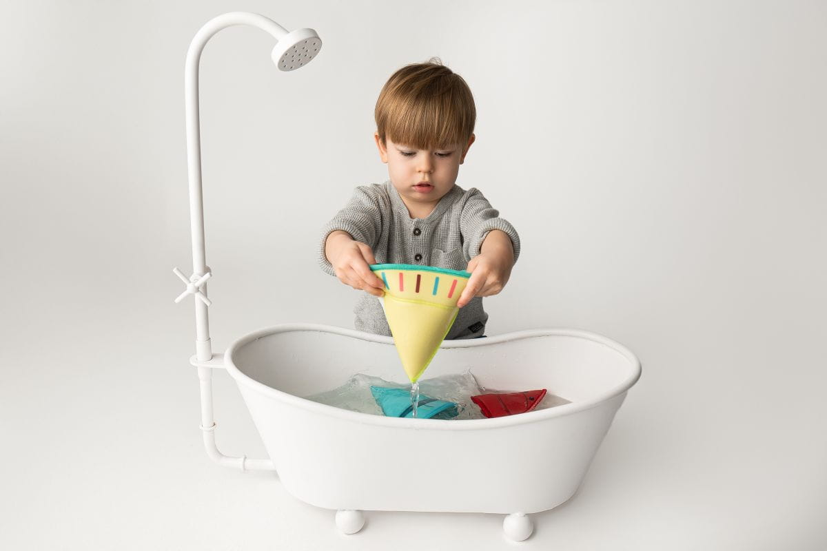 Co sprawia, że łódki od Mom’s Care są wyjątkowe? Na szczycie „żagla” dwóch większych łódek znajdują się specjalne otwory, dzięki którym po rozłożeniu, obróceniu do góry dnem i napełnieniu wodą, zabawka tryska jak fontanna, dostarczając maluchom dodatkowej frajdy i ekscytacji!