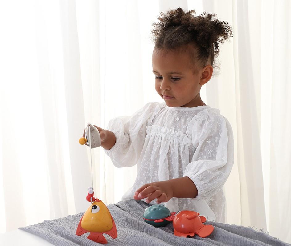Idealna zabawa do wody! Tolo Bio łowienie rybek zamienia każdą kąpiel w ekscytującą przygodę. Zanurz rybki w wodzie i patrz, jak wydobywają bąbelki! Następnie użyj wędki z magnetycznym robakiem, by wyciągnąć ryby z wody. Ryby, które mogą być używane od 12. m-ca życia, stanowią wspaniałą zabawę podczas kąpieli, a wędka do łowienia jest odpowiednia dla dzieci od 18 m-ca. To zabawa, która rozwesela dzieci, stymuluje ich rozwój i pomaga w nauce poprzez przyjemność z zabawy. Idealna zarówno do kąpieli, jak i do wspólnego spędzania czasu z rodzeństwem czy rodzicami!