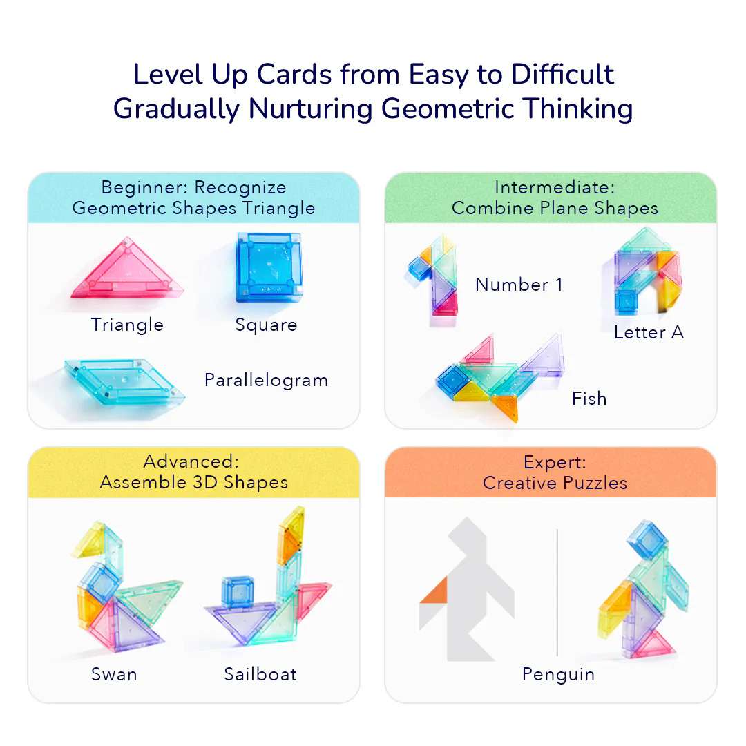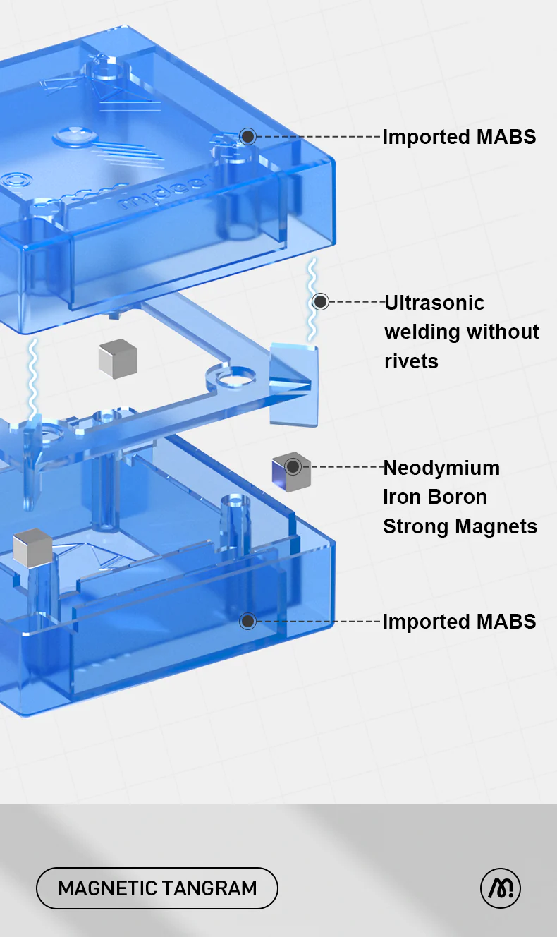 Magnetyczny Tangram 3D marki mideer to zestaw 7 elementów, które dziecko może łączyć ze sobą dzięki silnym neodymowym magnesom, idealnym do budowania skomplikowanych, przestrzennych konstrukcji. Do zestawu dołączona jest klepsydra, która wprowadza element rywalizacji i umożliwia wspólne wyzwania na czas układania klocków.