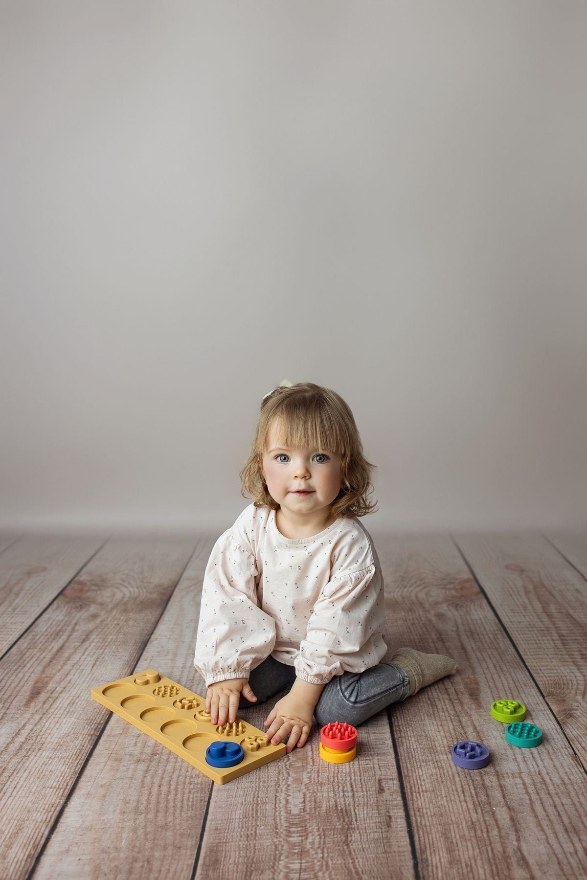 - Sensoryczna deska + 6 różnorodnych kółeczek sensorycznych