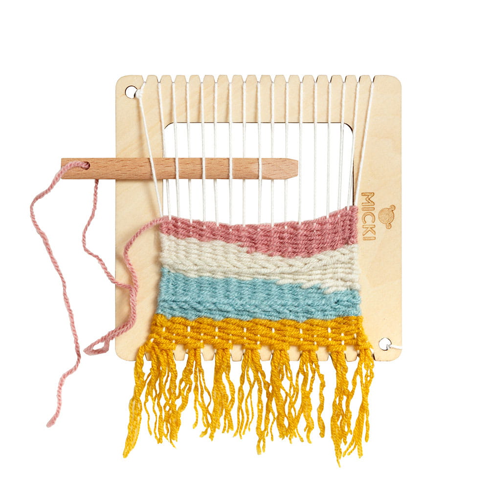 Odkryj klasyczną drewnianą ramę tkacką od Micki - praktyczną i kompaktową zabawkę idealną na rodzinne przygody! Ta mniejsza wersja ramy tkackiej doskonale sprawdza się jako towarzysz podczas podróży, umożliwiając tworzenie fantastycznych dzieł sztuki w dowolnym miejscu.