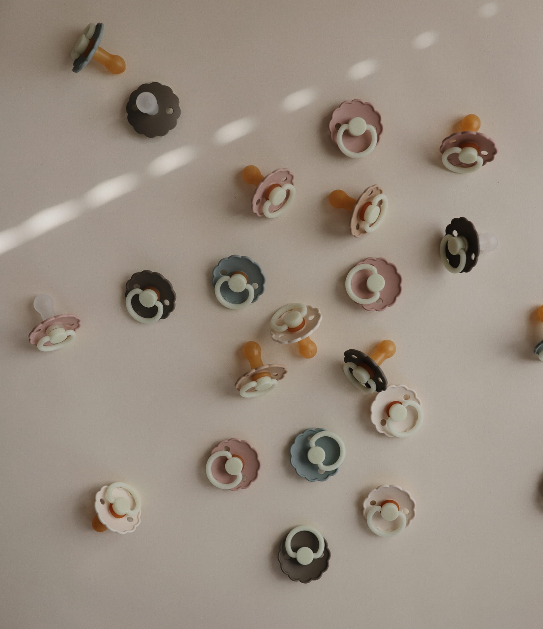 Smoczki marki FRIGG to esencja piękna w swojej prostocie. Charakterystyczny styl boho to element wyróżniający tej Duńskiej marki. Tarcza smoczka jest odpowiednio wyprofilowana aby nie dotykać delikatnej skóry dziecka, a tym samym zapobiegać pojawianiu się krostek, zaczerwienień i innym podrażnieniom skóry. Smoczek FRIGG NIGHT to niezastąpiona pomoc w nocy. Model ten, dzięki swojemu fluorescencyjnemu uchwytowi który świeci w ciemności, rozwiąże problem nocnych poszukiwań smoczka. Funkcja świecenia jest bardzo subtelna ale jednoczenie wystarczająca by znaleźć smoczek w ciemności. FRIGG Night jako jedyna marka smoczków na świecie jest w 100% zaprojektowana i wyprodukowana w Danii. Co zrobić aby smoczek FRIGG Night zaczął świecić? Aby aktywować funkcję świecenia, dostaw smoczek do źródła światła.