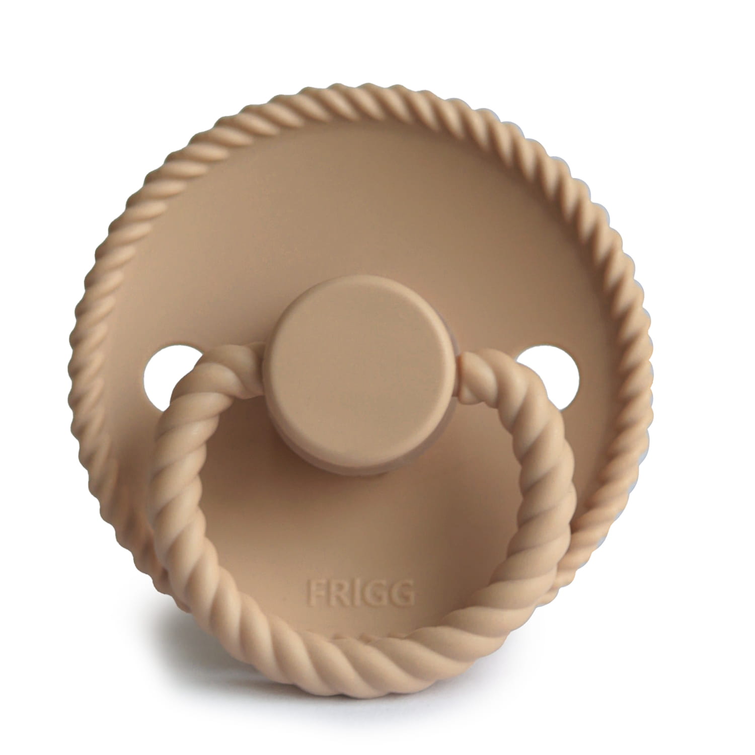 Smoczki marki FRIGG to esencja piękna w swojej prostocie. Charakterystyczny styl boho to element wyróżniający tej Duńskiej marki. Tarcza smoczka jest odpowiednio wyprofilowana, aby nie dotykać delikatnej skóry dziecka, a tym samym zapobiegać pojawianiu się krostek, zaczerwienień i innym podrażnieniom skóry. FRIGG Rope (linka), inspiruje do przemyśleń o przygodach które dotyczą siły, wysokości i głębokości. Lina to element niezbędny do uprawiania takich sportów jak żeglarstwo, wspinaczka czy trekking górski. Wzór ten reprezentuje bezpieczeństwo i stabilność, w momentach kiedy kolejne kroki stają się ryzykowne czy też trudne do przewidzenia. To właśnie te cechy leżą u podstaw projektu FRIGG Rope. Inspiracja Linką jest jednoznaczna w designie smoczka Rope, cienka linka otacza tarczkę, a grubsza stanowi uchwyt smoczka. FRIGG Rope jest idealny dla chłopców i dziewczynek które uwielbiają niesamowite przygody.